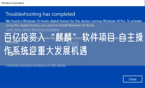 百億投資入“麒麟”軟件項(xiàng)目 自主操作系統(tǒng)迎重大發(fā)展機(jī)遇